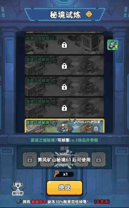 1. 攻略分为多个层级,每次进入消(xiao)耗(hao)1把秘境密钥,攻略失败则返还密钥。