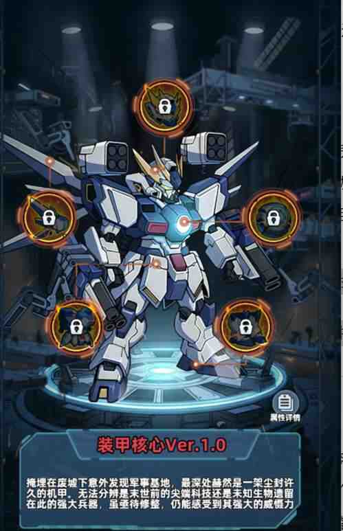 机甲系统也可在作战中为幸存者提供额外属性增益。目前机甲分为头部、核心、足部、光翼、胸甲五个部位,装配后可获得显著战力提升。