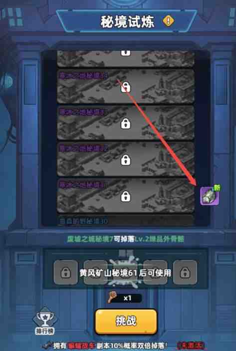 5. 达到指(zhi)定(ding)层数后,可使用“外骨骼能量”道具,使本次(this time)攻略成功后额外掉落指(zhi)定(ding)品质的外骨骼。
