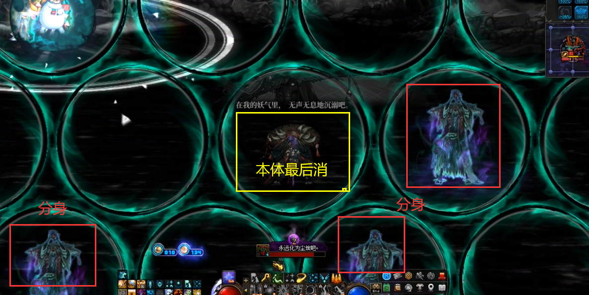 进入后全屏出现圆圈,需要记住带有分身和本体的圆圈