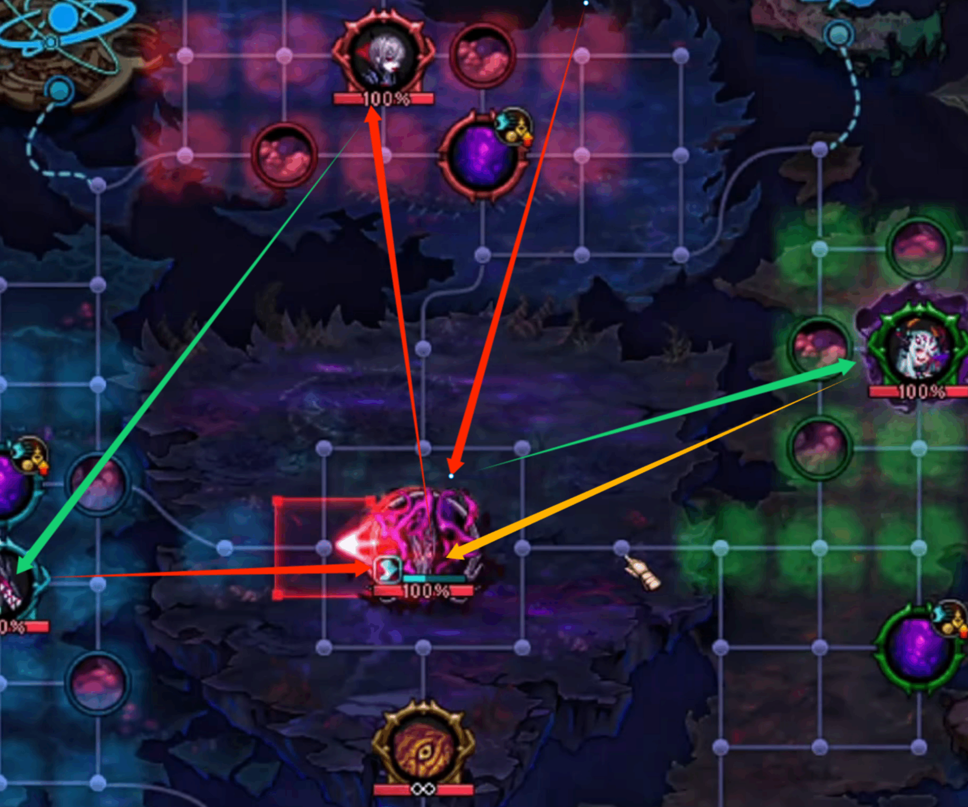 黄队开太阳先处理强化小怪,再去干剩下两个(two)普通(putong)小怪。