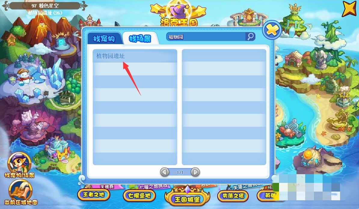 打开世界地图进入糖果迷城;选择植物园遗址即可;打开世界地图点击左下角的找场景;点击找场景;直接搜索植物园遗址,点击前往即可到达。