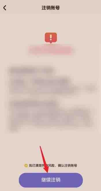在注销账号頁媔,點擊下方继(ji)续(xu)注销旣妸。
