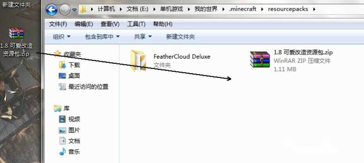 3.将准备(bei)好(hao)minecraft材质包,将材质包文件(document)(不(bu)要(yao)解压)复制(copy)到游戏程序下的我的世界.minecraft esourcepacks文件(document)夹中。