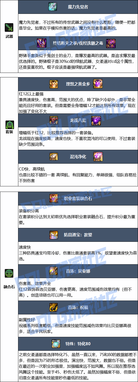 DNF狄瑞吉版本女柔道毕业装备建议