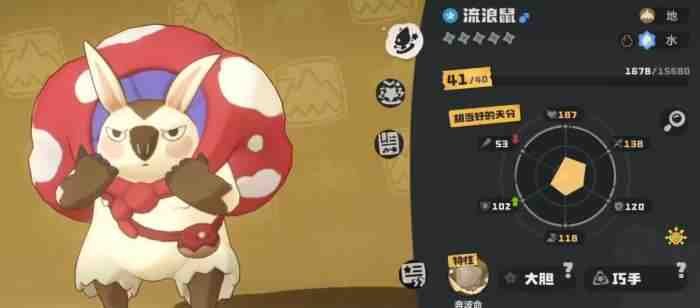 培养建议方面,若以功(gong)能(neng)定位(dingwei)为主导,推荐采用轻量化养成策略:集中资源达成进化门槛(当前版本设定为42级+亲密度满值),后(hou)续无需投入大量精力强化战斗属性。进化完成后,流浪鼠即可稳定(Stablize)承担双职——日常快速位移与高效率资源搜寻。若玩家倾向尝试其战斗潜力,需注意地系陣容中存在多项数值更优的替代选择(如掘地鼠、岩崩鼠等),故非必要不建议深度培养战斗向配招与个体值。