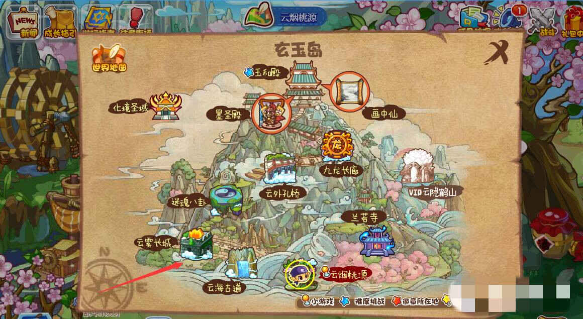 2、通过(adopt)玄玉岛的小地图(tu)进(jin)入云雾长城。
