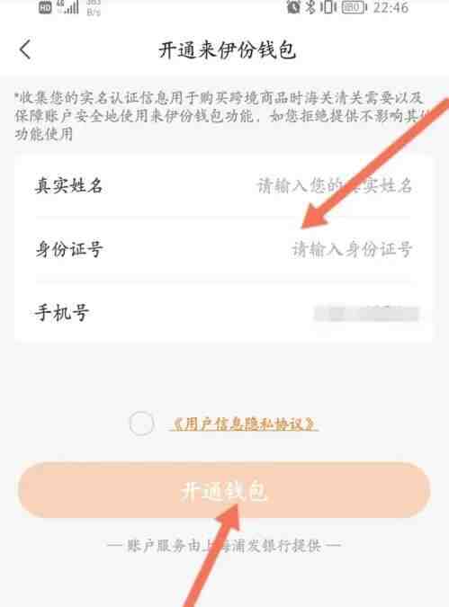 朂後瀭叺身(shen)份(fen)信息(xi),點擊开通钱包選項即(ji)可。