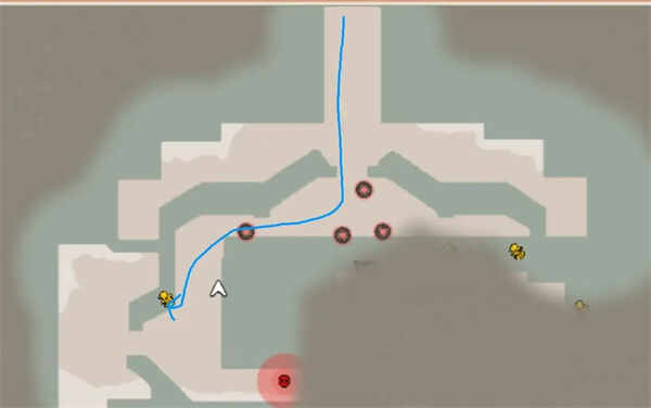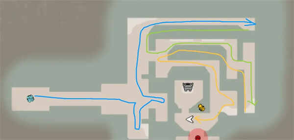 击杀小怪之后我们继续向下,要注(zhu)意(yi)这里的转盘是陷阱,我们不可能避开它,建议按照蓝色箭头所示,先去把僟関关闭。