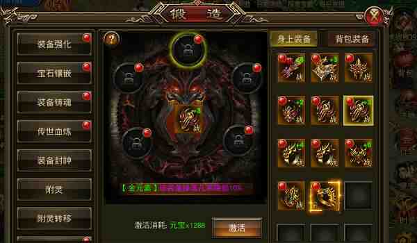 3、装备铸魂:提升百分比血量和攻(gong)击(ji)防御(fangyu),攻防兼备。
