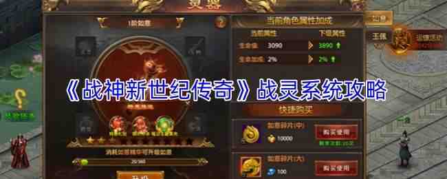 战神新世纪传奇战灵系统说明:你如何看?玩家可通过挑战战灵副本或参与运营活动获取战灵,战灵不仅能提供巨额属性加成,还能在战斗中释放主动技能;建议优先培养与职业契合的攻击或防御型战灵,通过吞噬低级战灵提升星级解锁更强技能,各位朋友们快来看看吧。