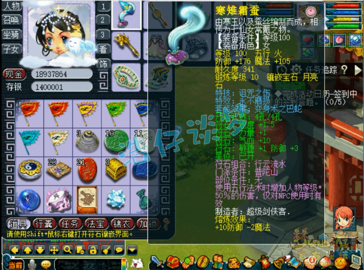 梦幻西游109普陀天地号配置100级诅咒之伤永不磨损巴蛇套女头,適個特技(teji)在杀难度(nandu)任(ren)务的时候(when)有奇效。