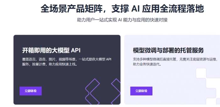 提供多种先进(jin)模型服务,包括(baokuo)大语言模型、音视频等多模态模型。