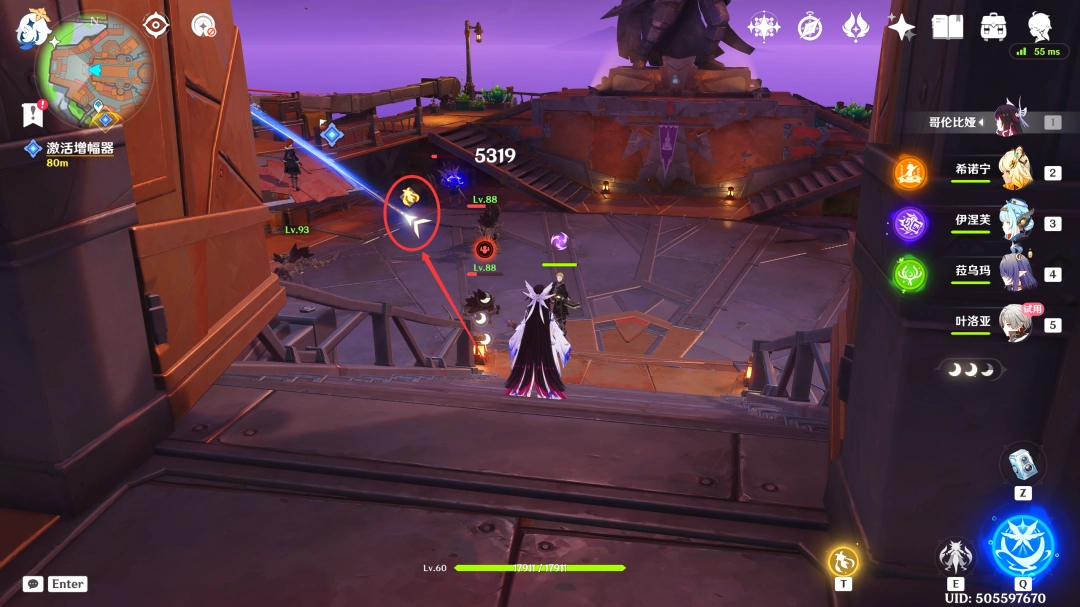 来到此处后,我们与操作台交互,启动「德肋庇革劳诺之箭」大炮