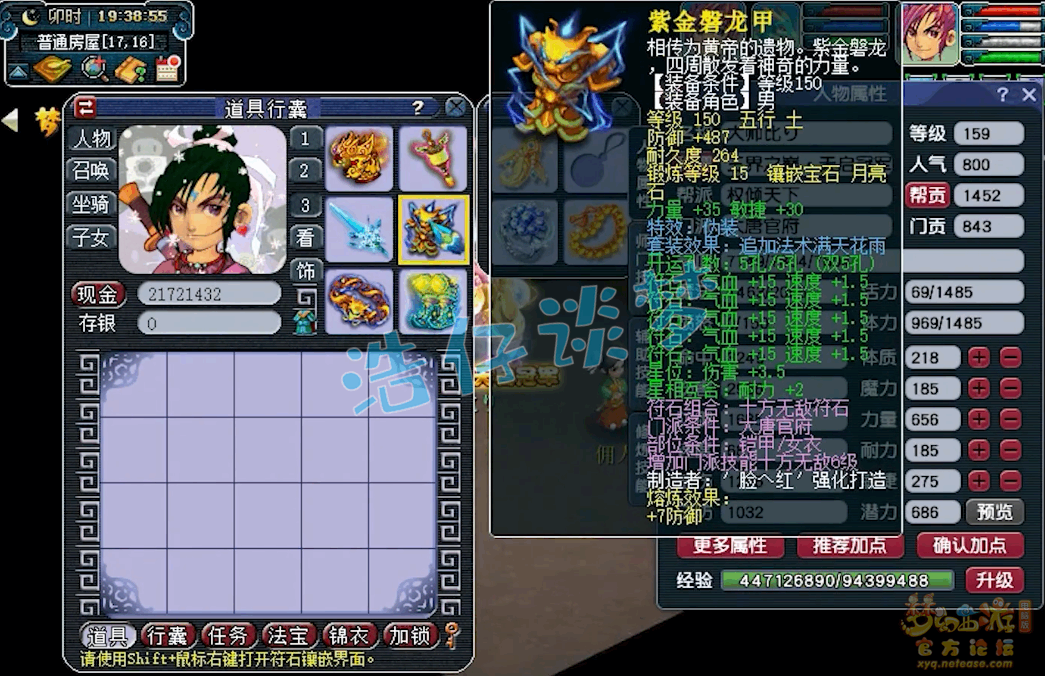 梦幻西游大唐159装备选择攻略150级满天花雨套铠甲,力敏双加65,打了15锻月亮石。
