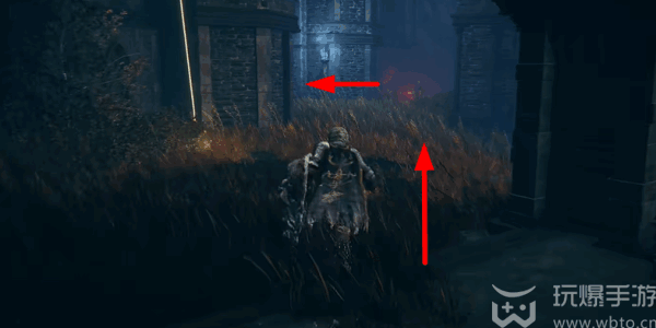4、进入到城堡当中一直前行寻找木梯的位置,在此开始寻找。