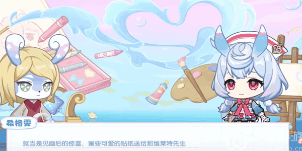 2、接着开始之(zhi)后(hou),就需要进(jin)行(xing)一段剧情对话之(zhi)后(hou),画些可爱(cute)的贴纸送给那维莱特先生。
