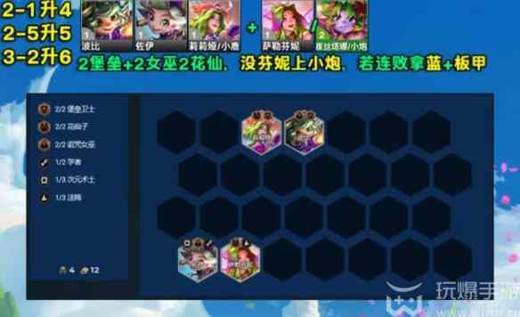 1、2堡垒+2女巫2花仙,没芬妮上小炮,若连败拿蓝+板甲