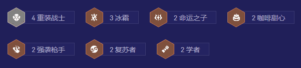 4重装战士、3冰霜、2命(ming)运之子、2咖啡甜心、2强袭枪手、2复苏者、2学者