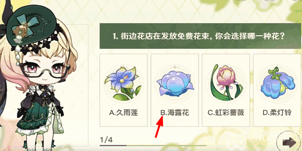 3、问题1、街边花店在發放免费(mianfei)花束,你会(nihui)选择哪一种花?【B:海露花】。