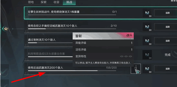 ③在挑战(challenge)目标中有一个(there is one)【使(shi)用(yong)近战武器消灭200个敌方】,玩家只要完成(cheng)该目标,然后在這裡即可领取皆斩。