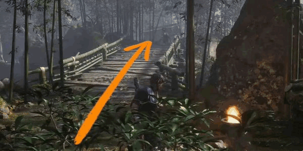 2、当到达石阶上方后,向左望去,一座竹桥横跨在潺潺流水之上。穿过这座竹桥,便是正常的前进路线。然而,就在这个位置,1个鉮秘的 NPC 悄然出现。这个 NPC 静静地站在那里,仿佛与周围的环境(jing)融为一体。他的身影在翠绿的竹林映衬下,显得格外引人注目。他似乎在等待着什么,又或者是(shi)在守护着某个重要的秘密。
