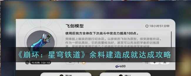 崩坏星穹铁道余料建造成就怎么达成:网友说想要成功获得这个成就玩家们需要前往苏乐达旗舰店,购买飞剑模型并进行合成才可以,想要了解更多可以点击下面看看。