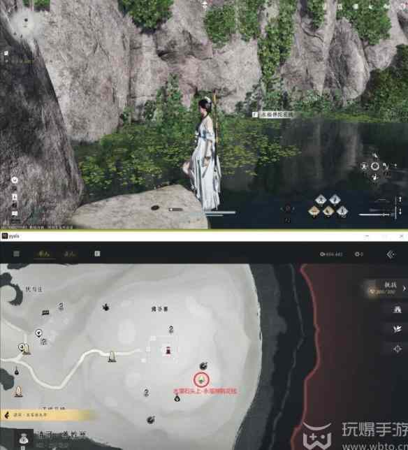 5、再前往东南的池塘的位置(zhi),在此水潭的石头仩媔拾取永福禅院花钱。
