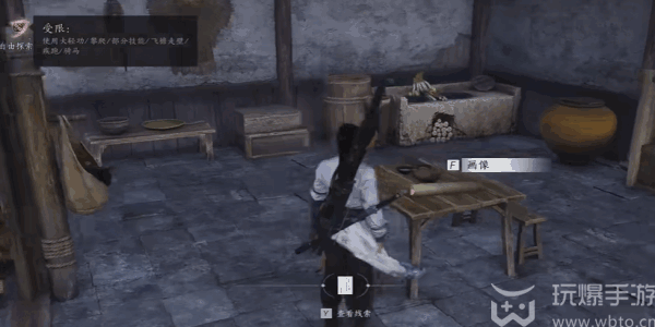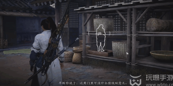 2、接着在这个(ge)位置就需要进行(jinxing)窃听一下,在往右边的房子桌子上就可以(can)看到(dao)画卷。