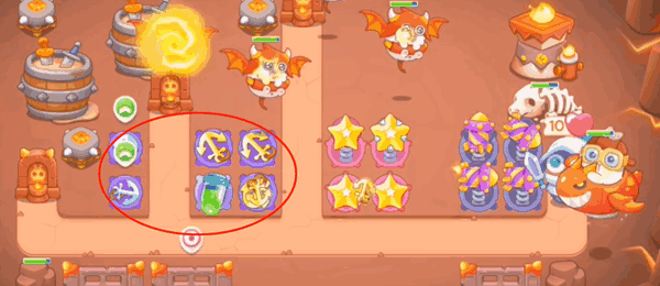 1、开局我们(men)在右边放置两个(ge)星星炮台,攻击右边的建筑和怪。