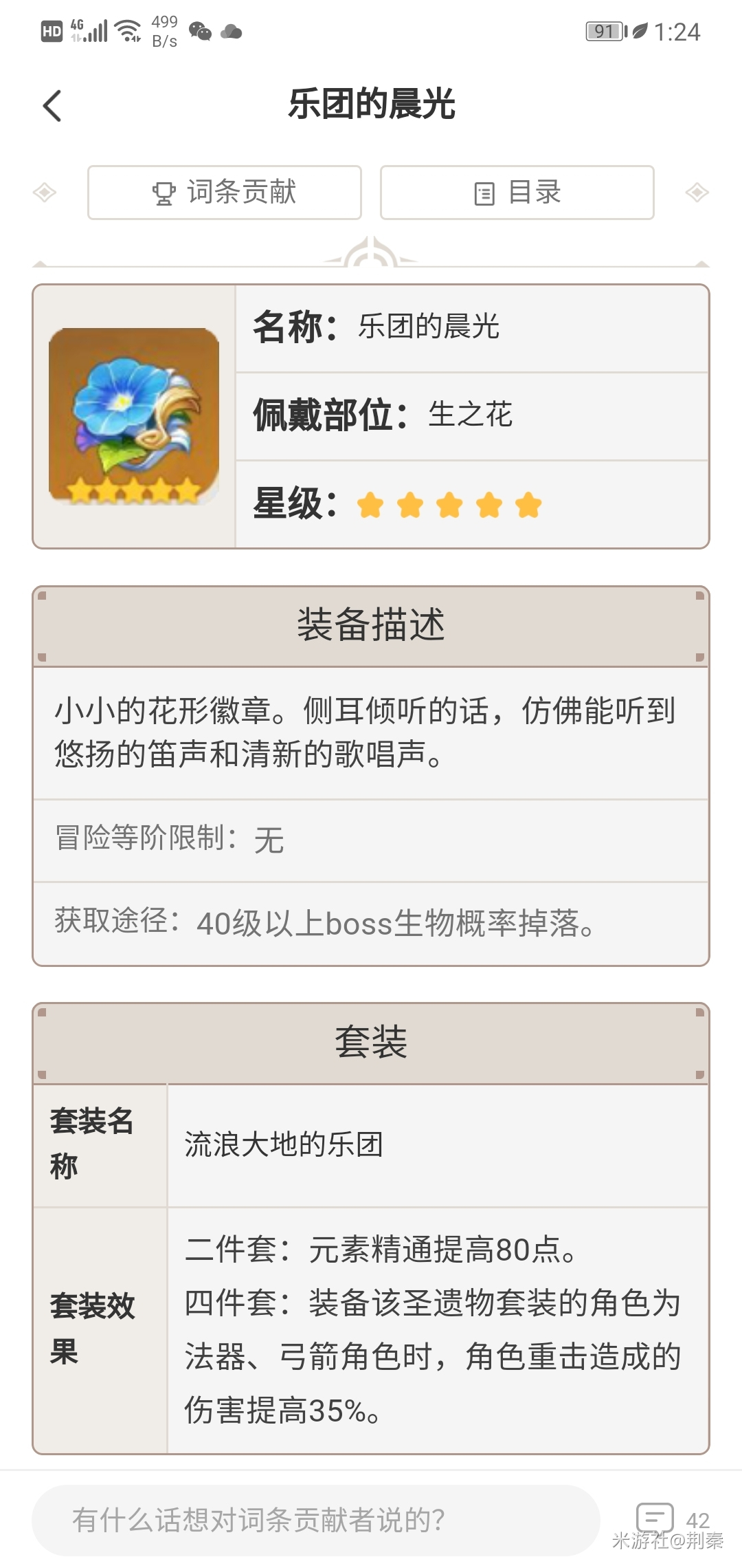 铁匠铺就可(ke)以(yi)获得,被动可(ke)以(yi)增加蒸发的伤害(harm),副属性(shuxing)元素精通可(ke)以(yi)增加蒸发伤害(harm),非(fei)常適合打输出。