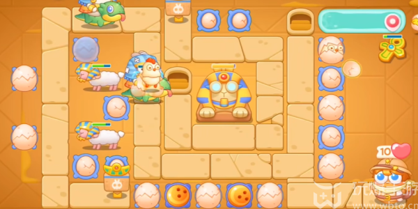 保卫萝卜4法老归来第106关通关攻略:1、先在下方的位(wei)置(zhi)建造上三个(ge)鸡蛋,shiyong鸡蛋清理(qingli)道具。