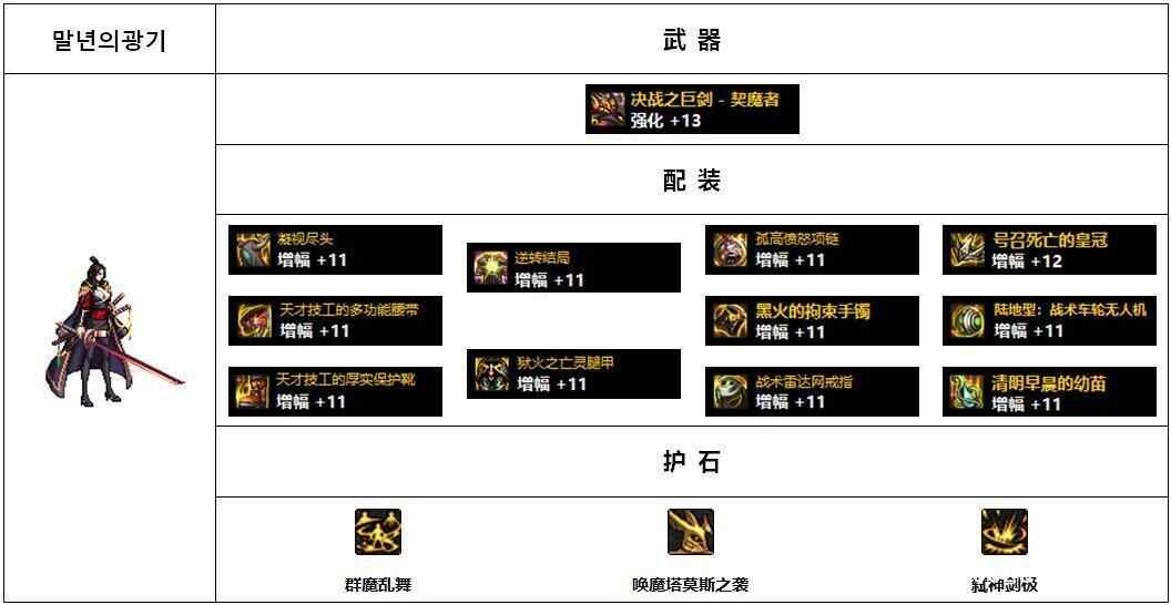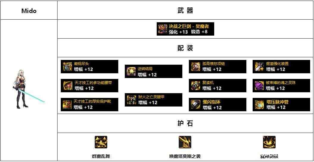 配装探讨:这位的配(pei)备(bei)到是提了1个醒,如果(guo)增幅13不好达成(cheng)可以(keyi)试试强化(qianghua),毕(bi)竟(jing)强化(qianghua)保底高一些;