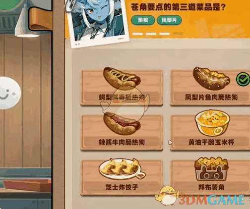 4、第三题:凤梨片鱼肉肠热狗