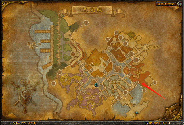 联(lian)盟则位于联(lian)盟主城的军官兵营位置(weizhi)(坐标77.1,67.9)