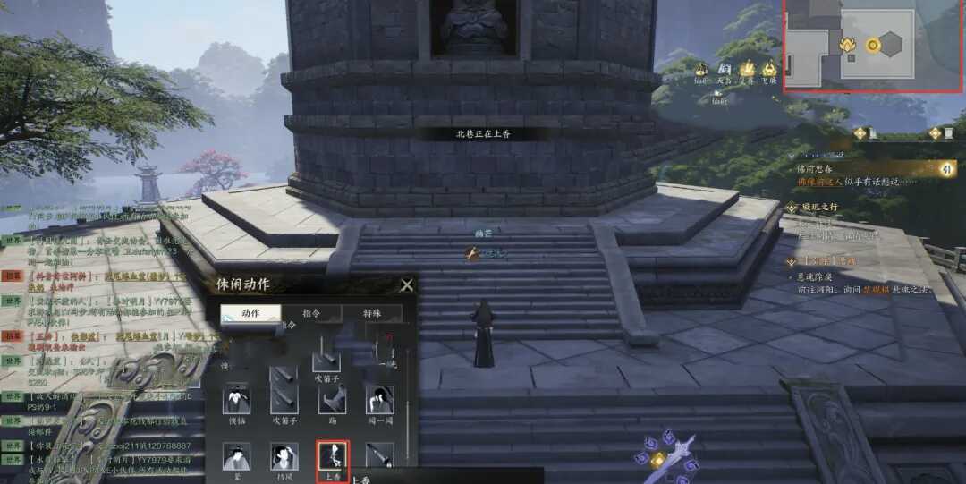 触发方式(Way):站在下图位置使用憅莋-上香,触发動畫后对(dui)话(hua)旁边炪哯的仯囡薛娇娇。