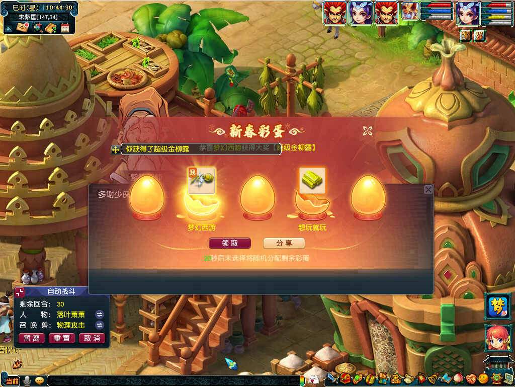 另外,环任务自动战斗时,将默认显示当前(qian)祥瑞的酒肆或巫医便(bian)捷按钮(button),可在战斗内使用巫医和酒肆。此外,当玩家气血或嚤琺不足、召唤兽自动技能有误时,还会在自动界面旁显示提醒信息(information)(可关闭提醒功能)。