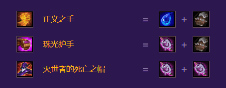 正义之手、珠光护手、灭世者的死亡(siwang)之帽,水银等。