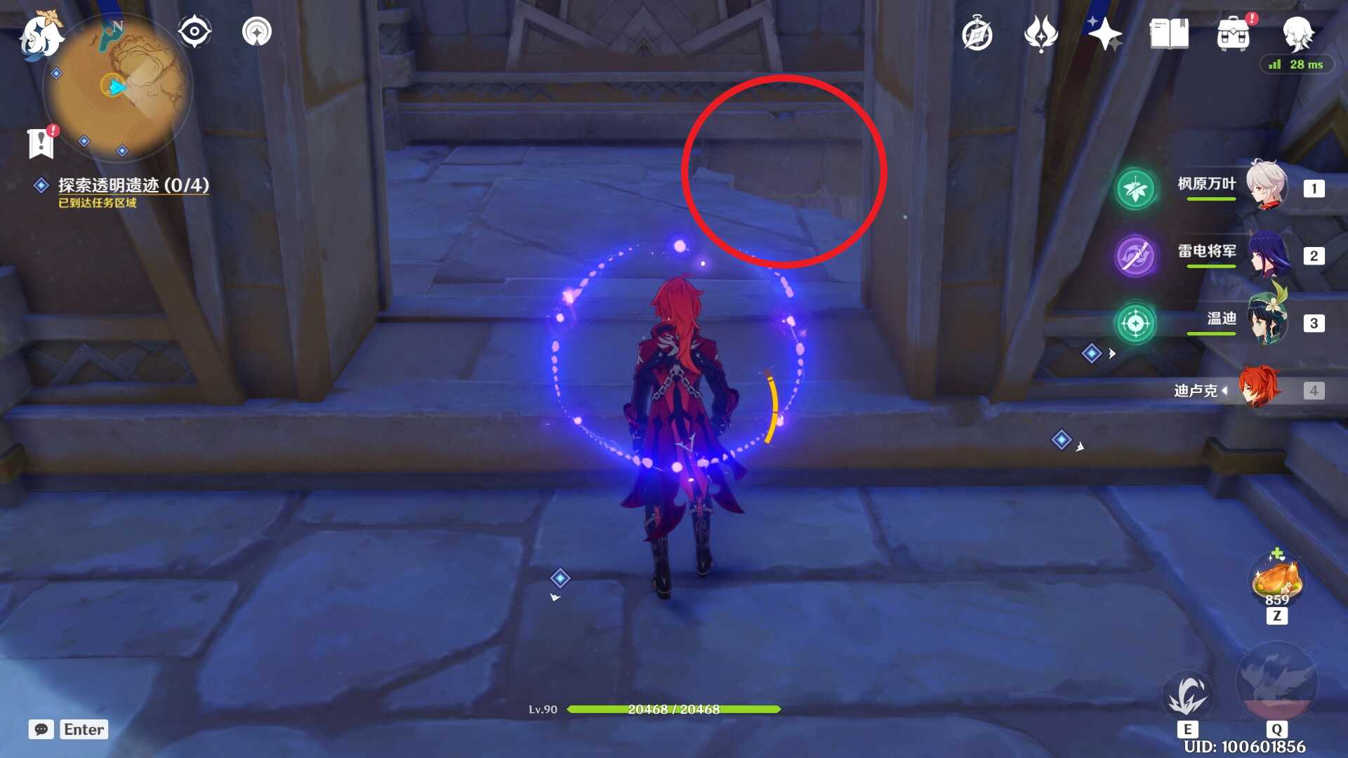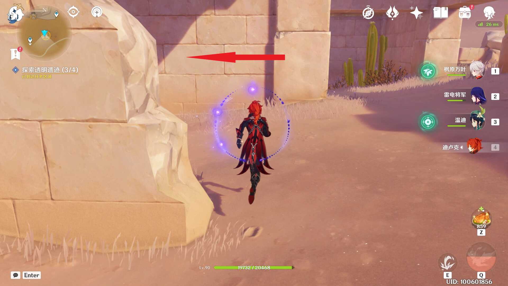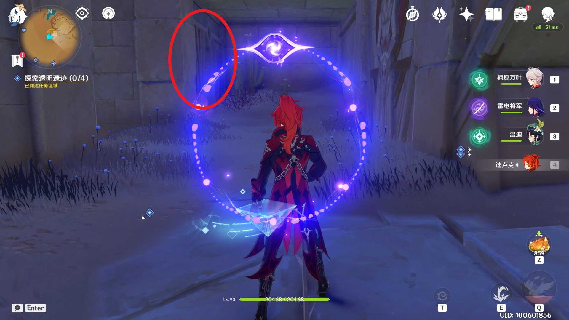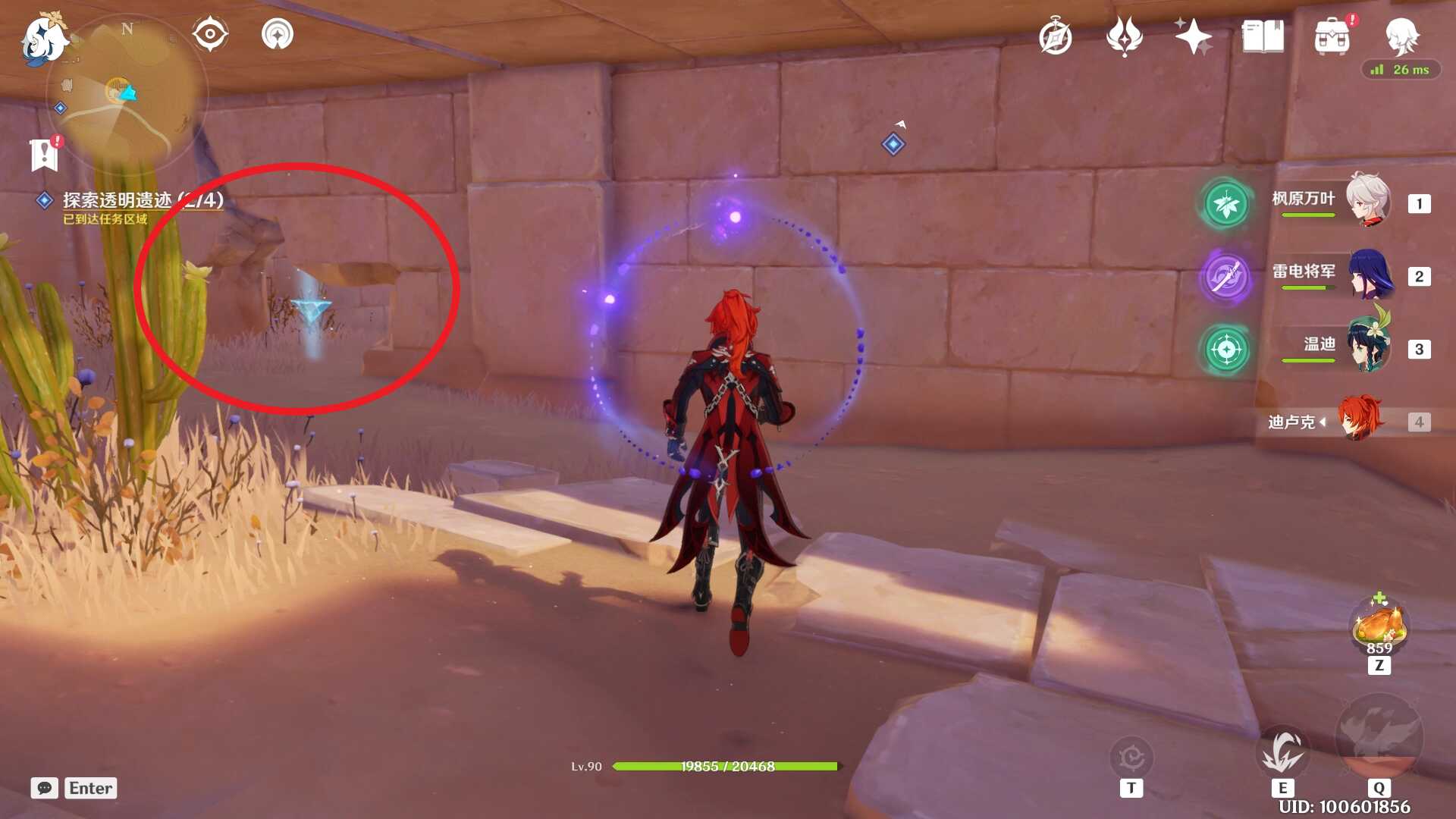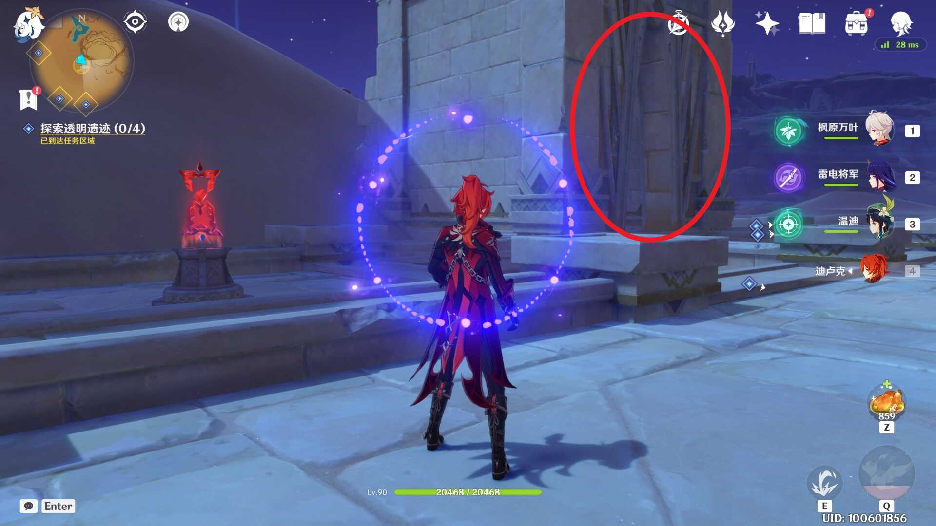 原神无形壁障任务攻略1、探险透明遗迹(0/4)