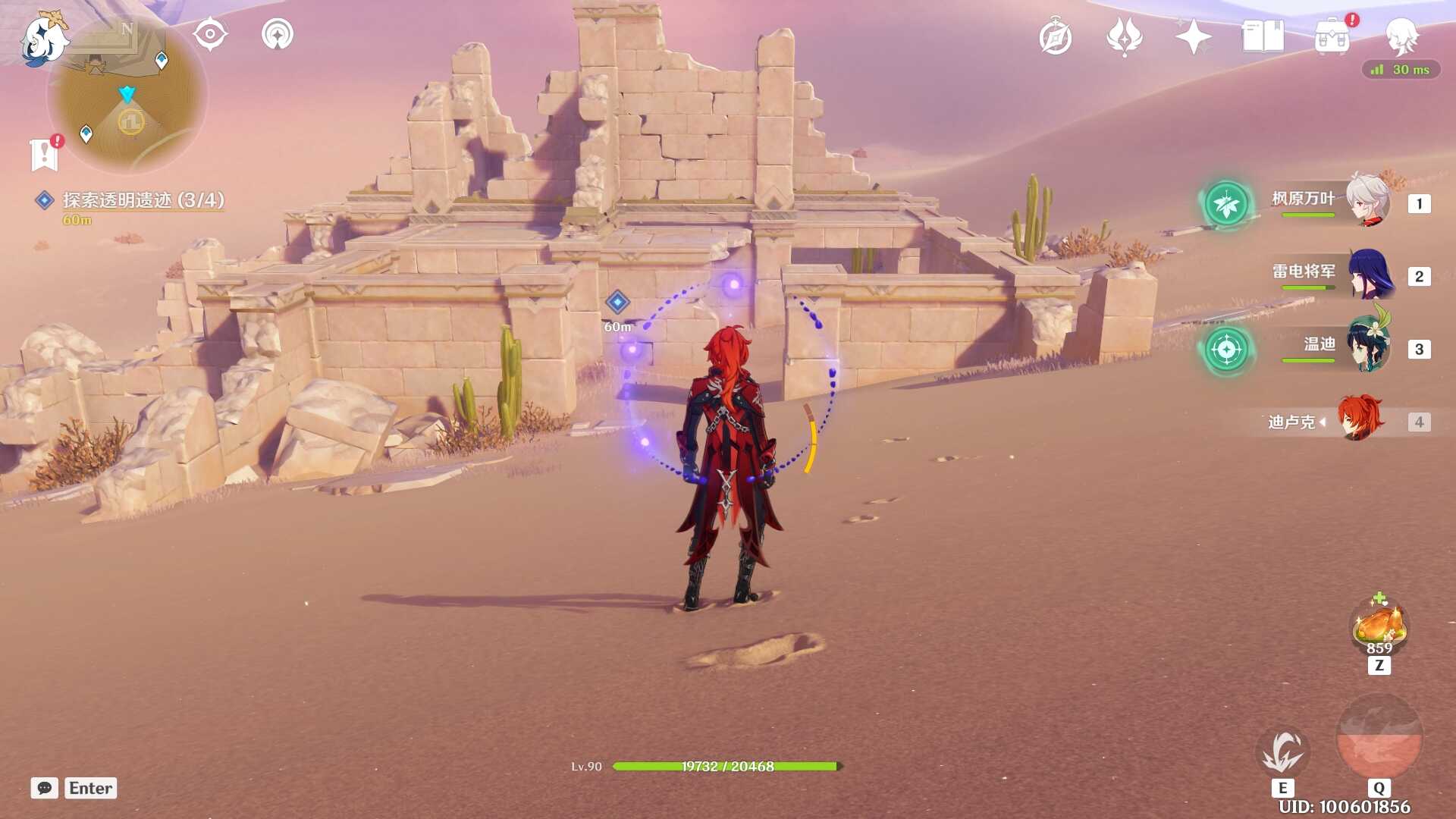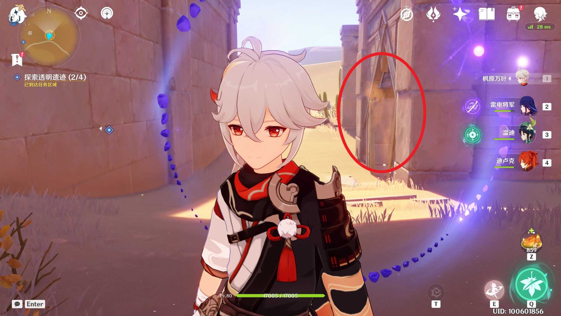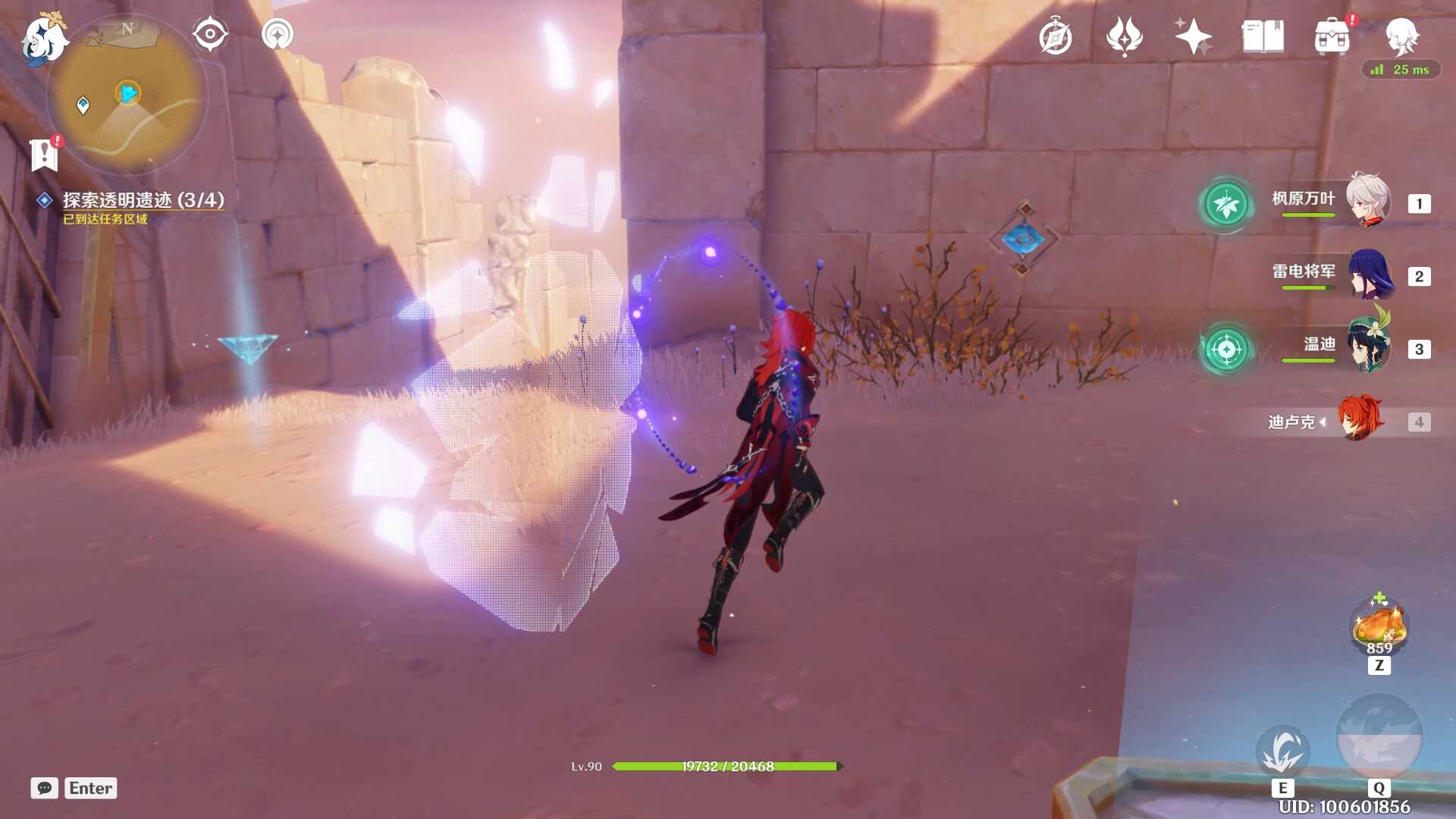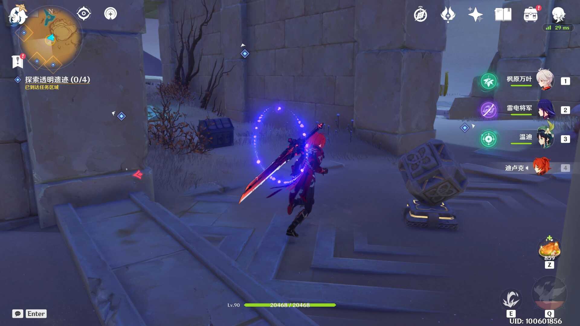 原神无形壁障任务攻略1、探险透明遗迹(0/4)