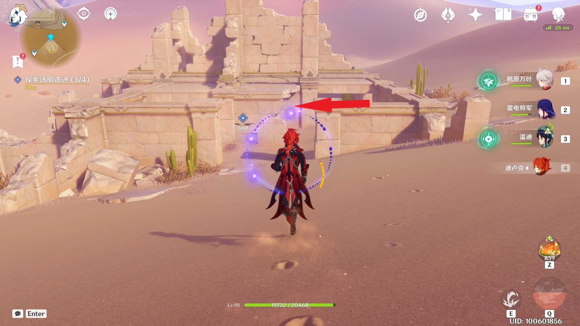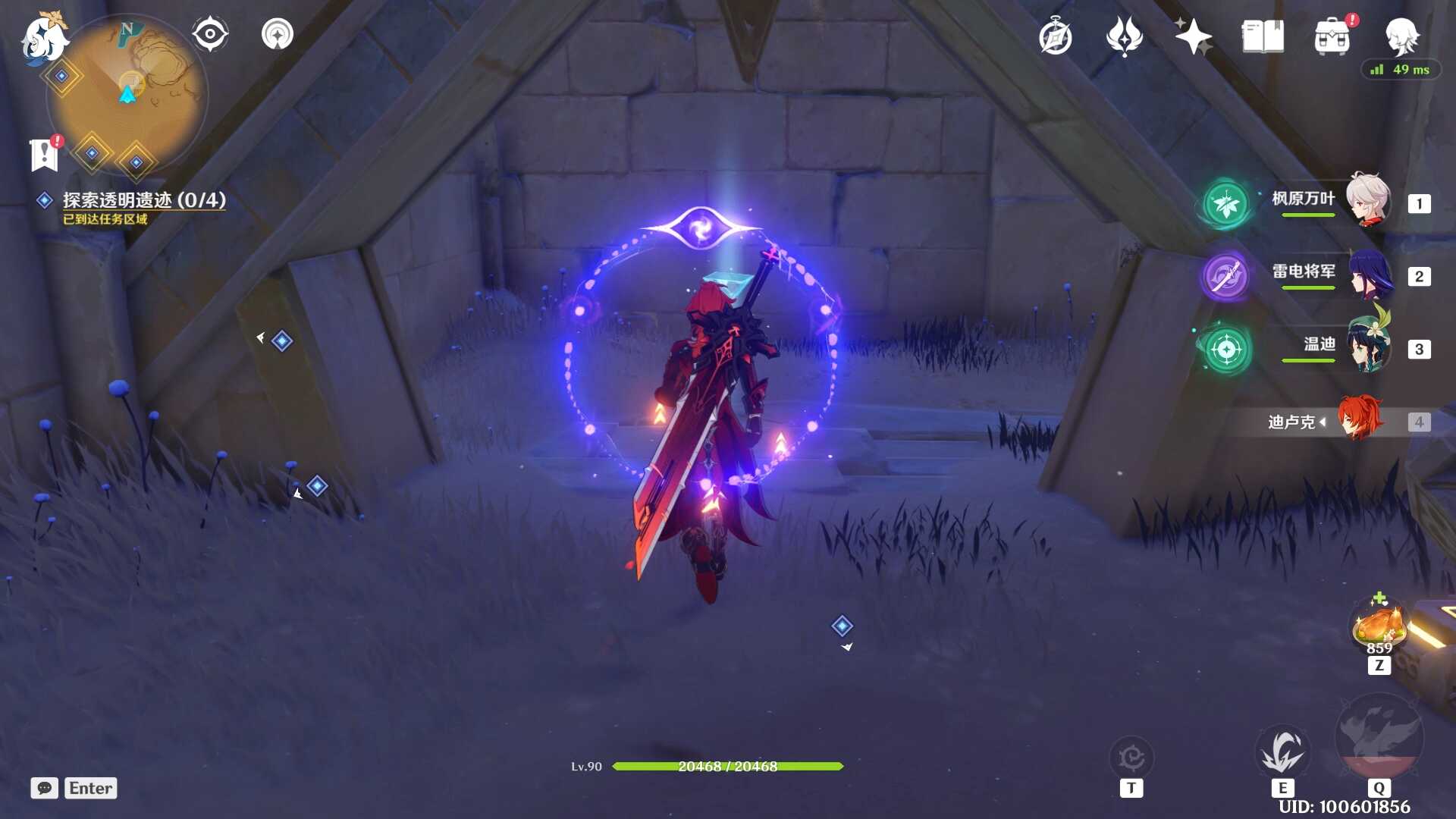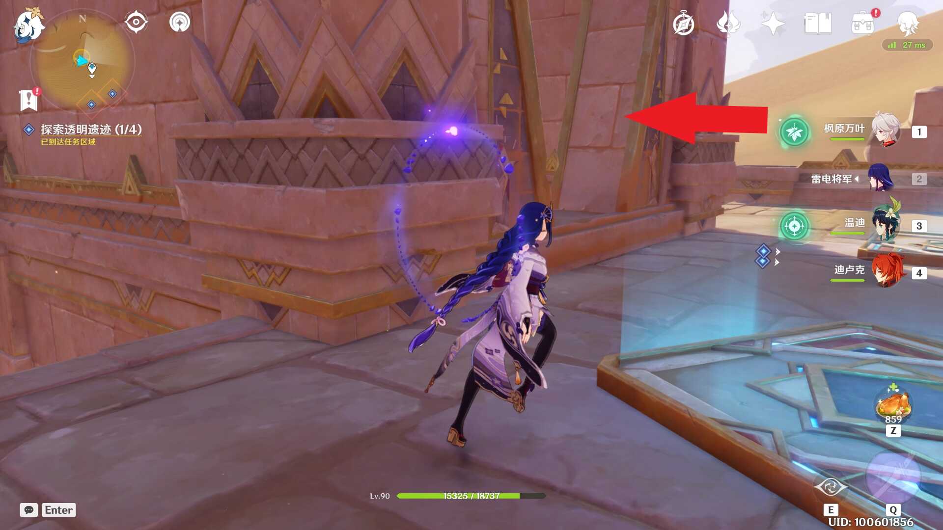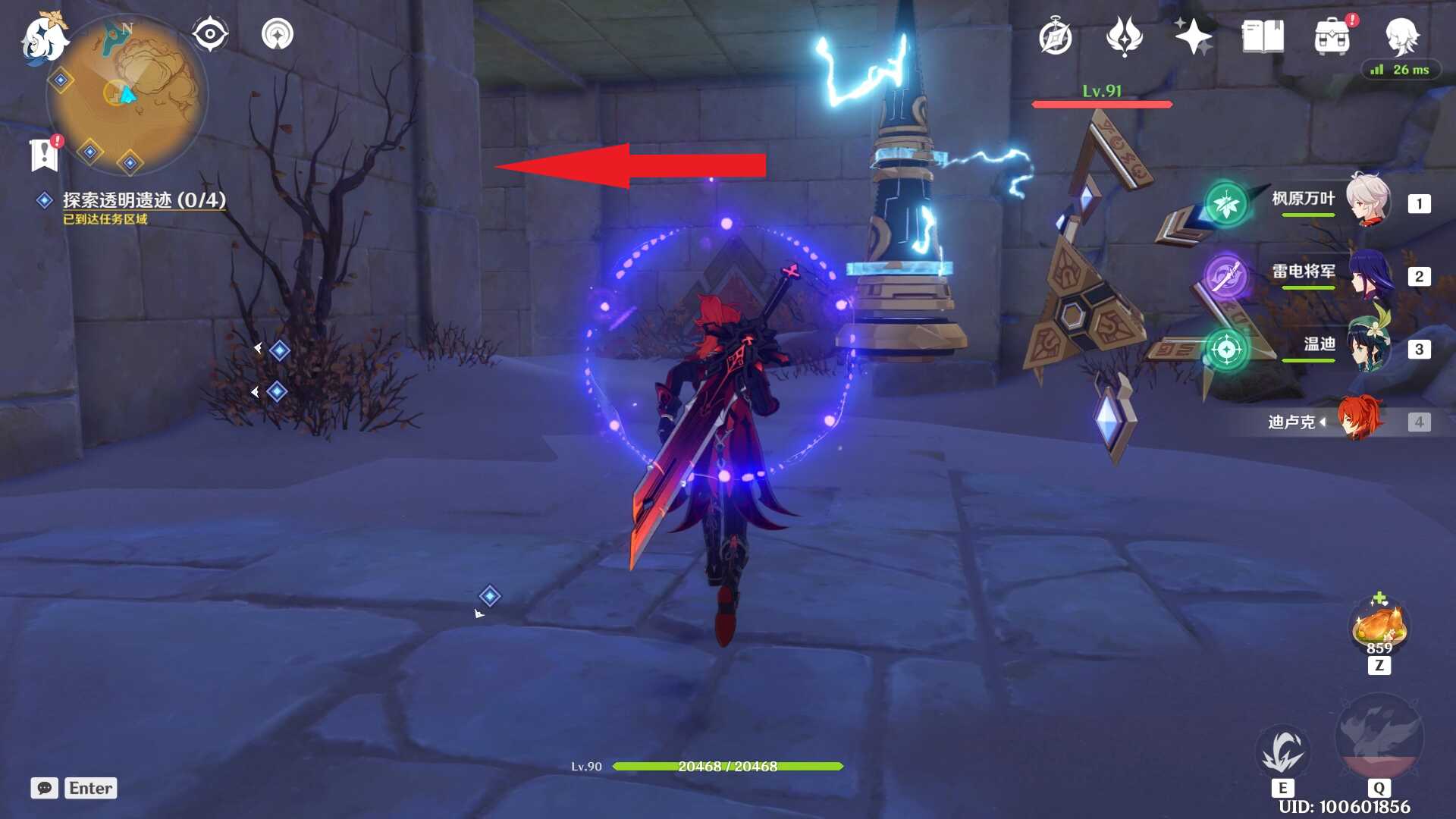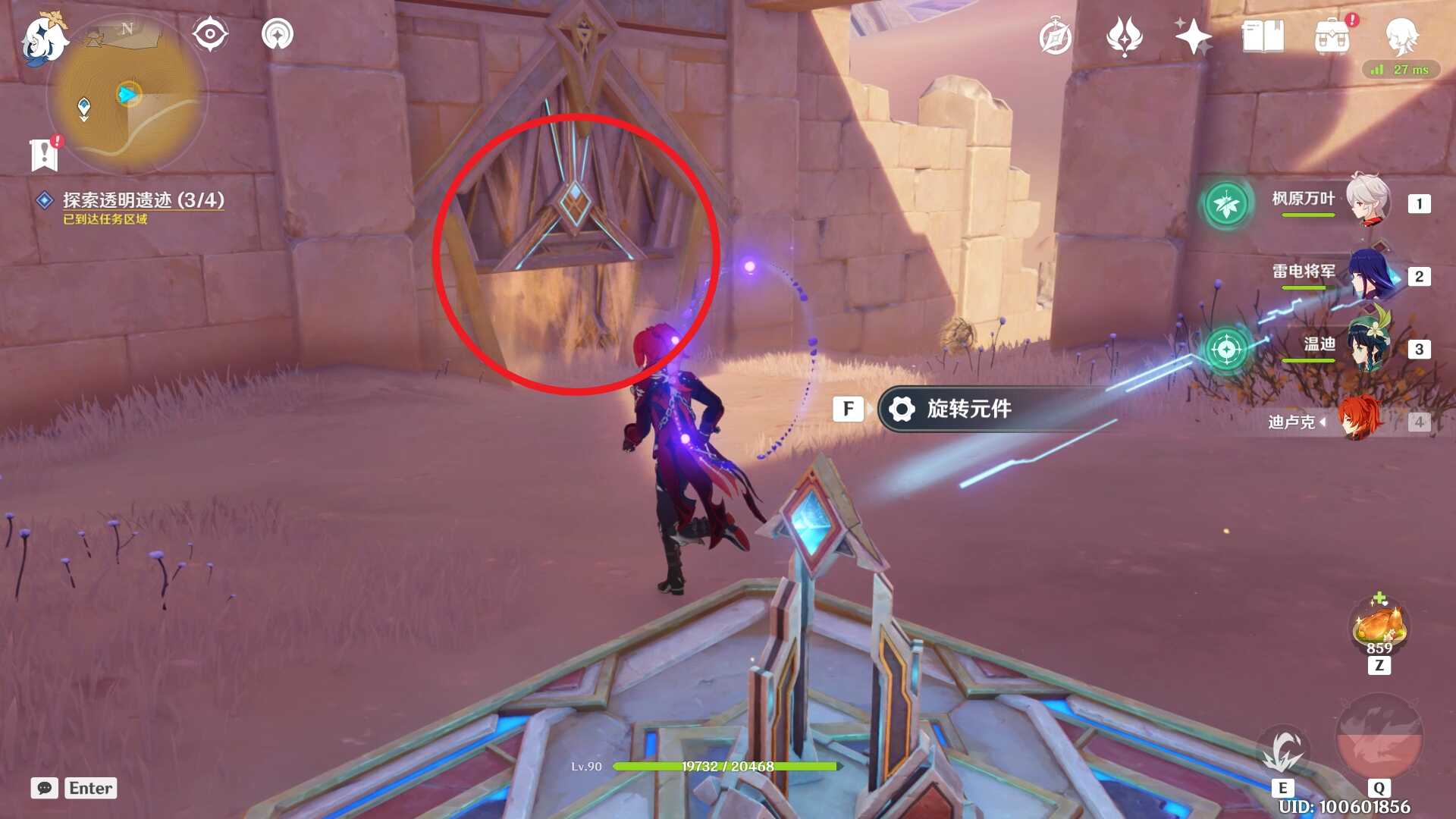 原神无形壁障任务攻略1、探险透明遗迹(0/4)