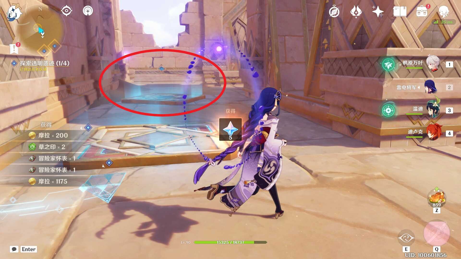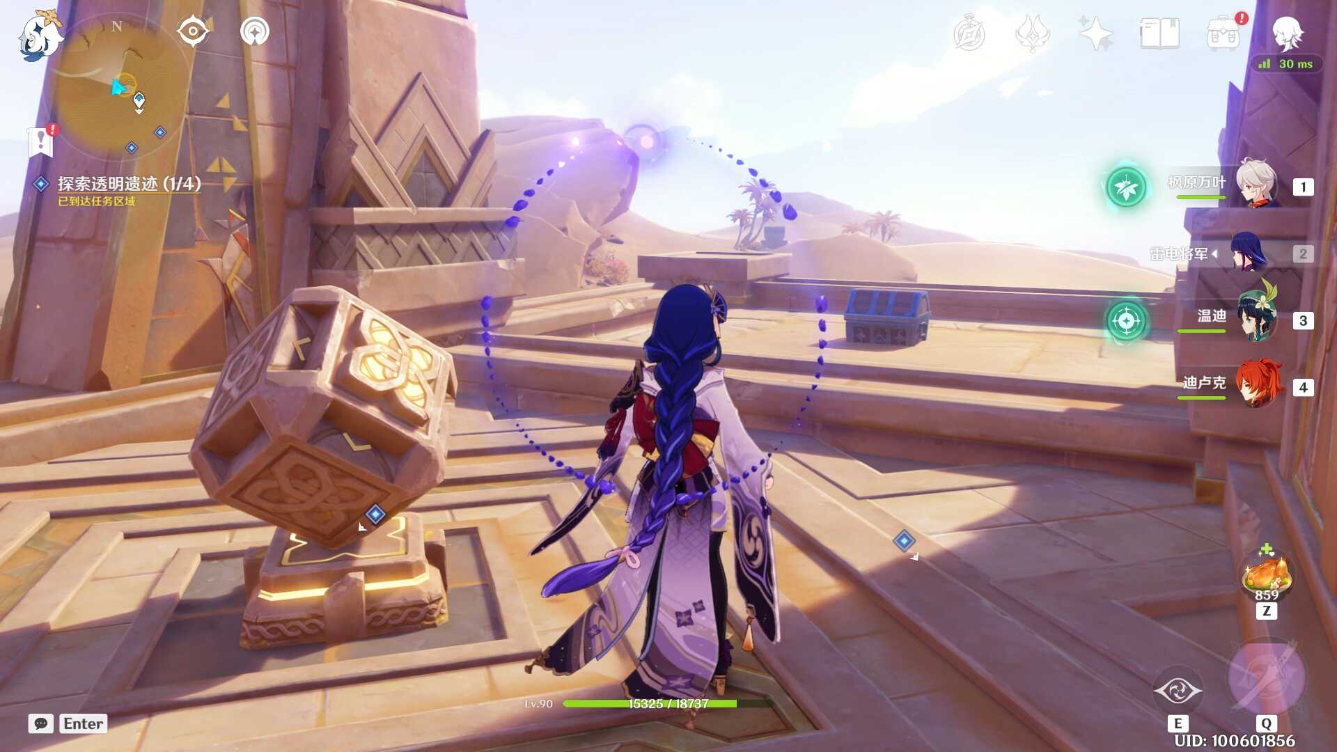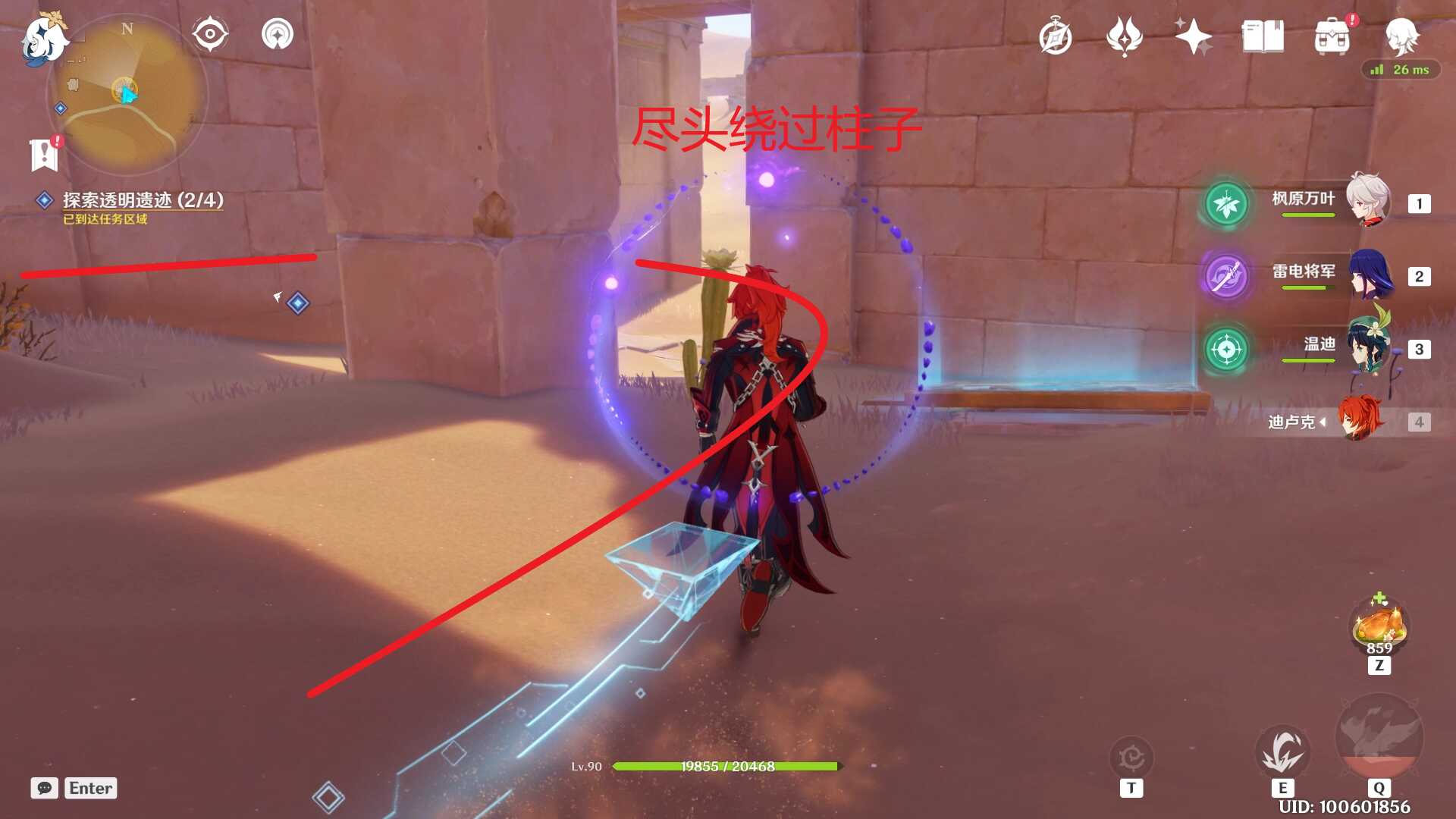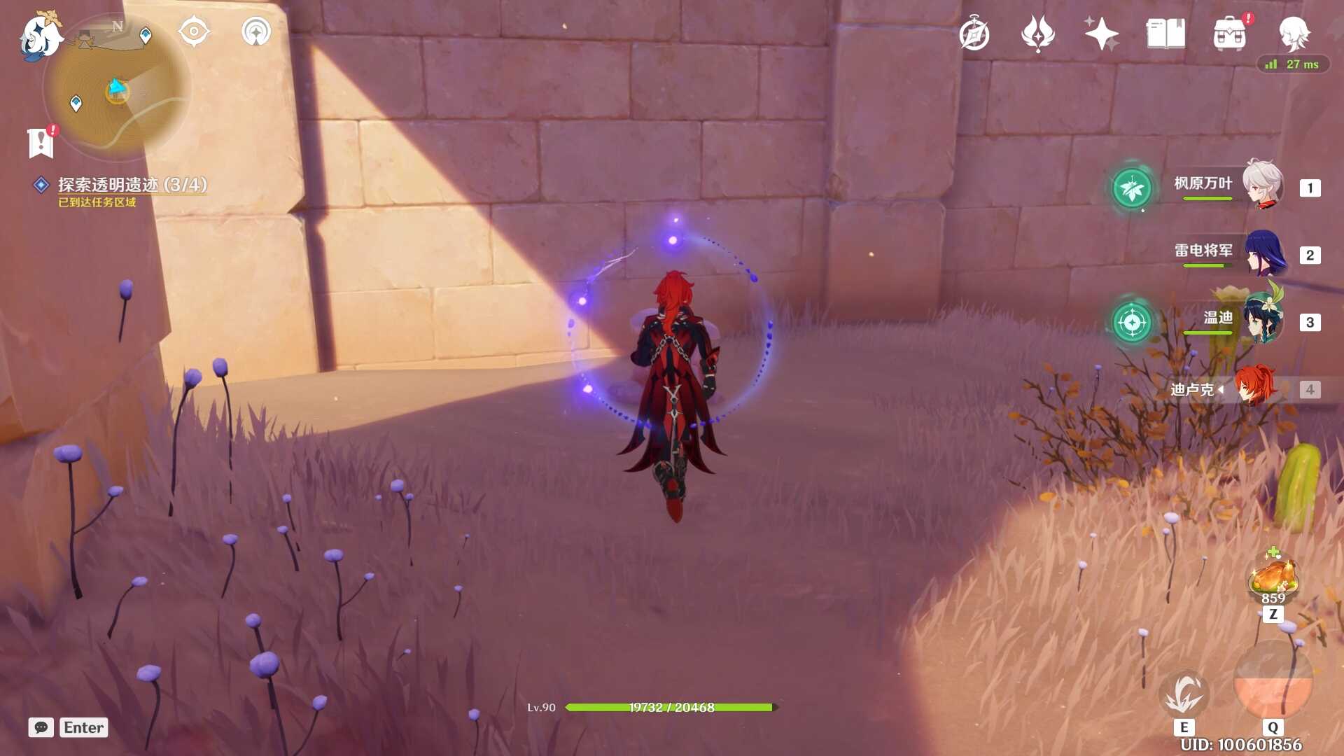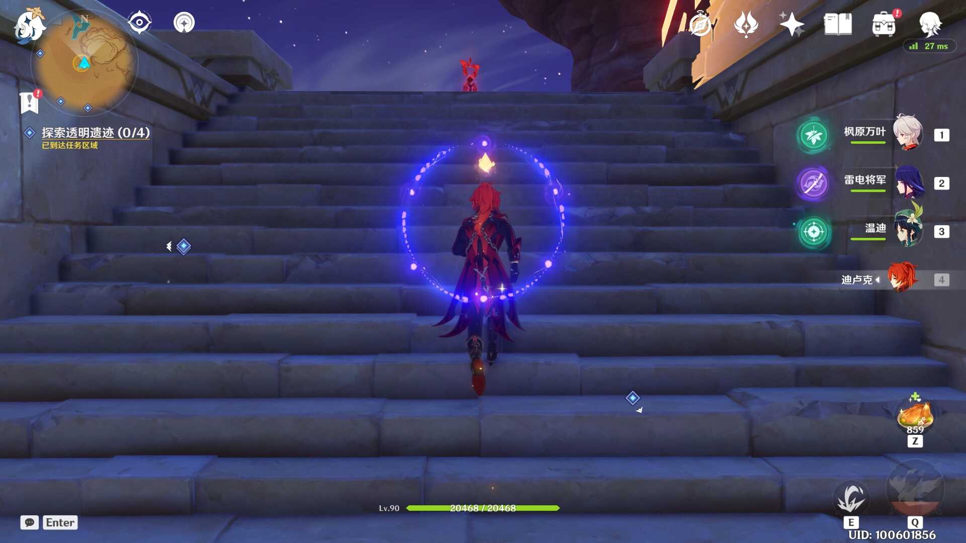 原神无形壁障任务攻略1、探险透明遗迹(0/4)