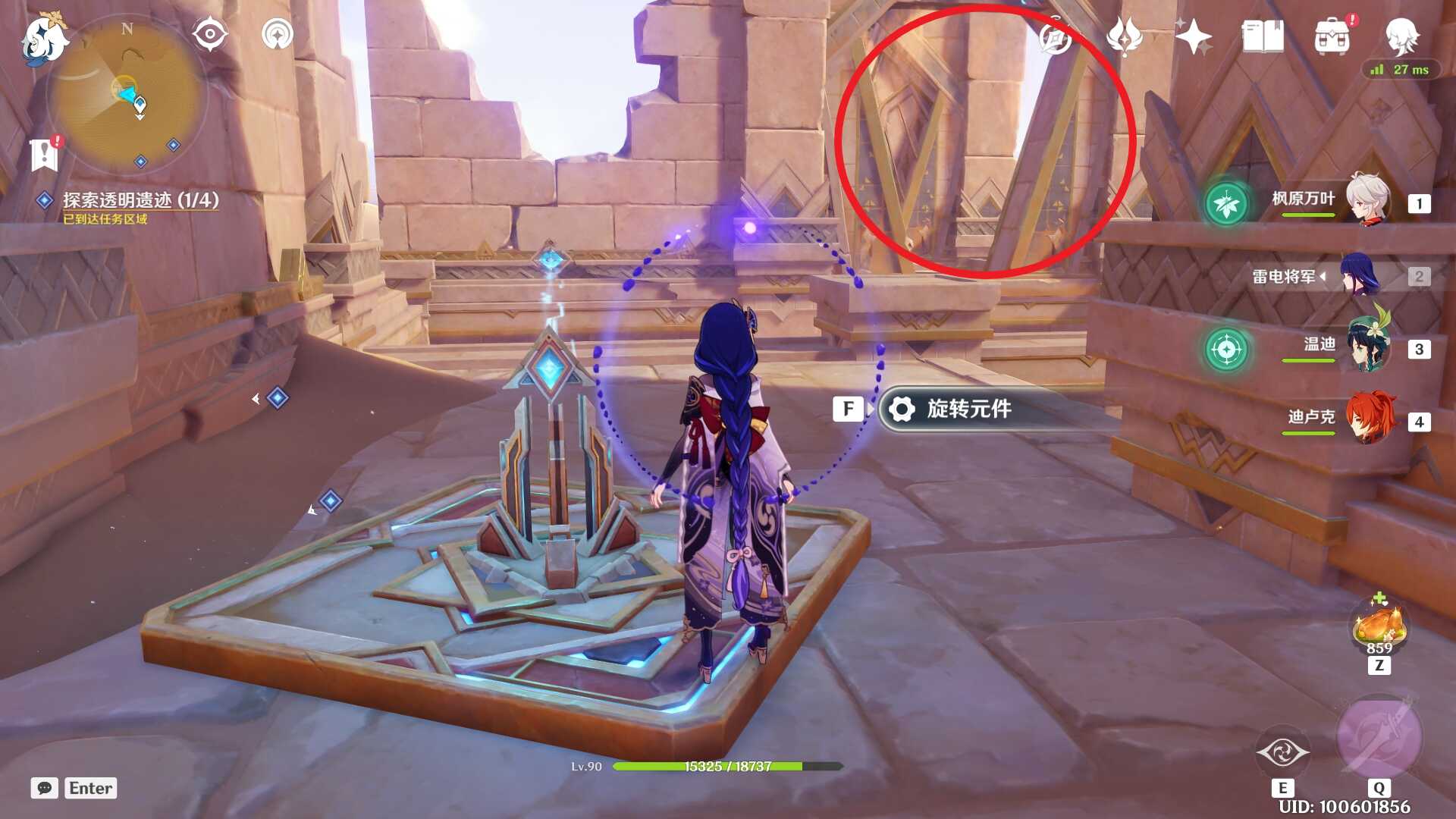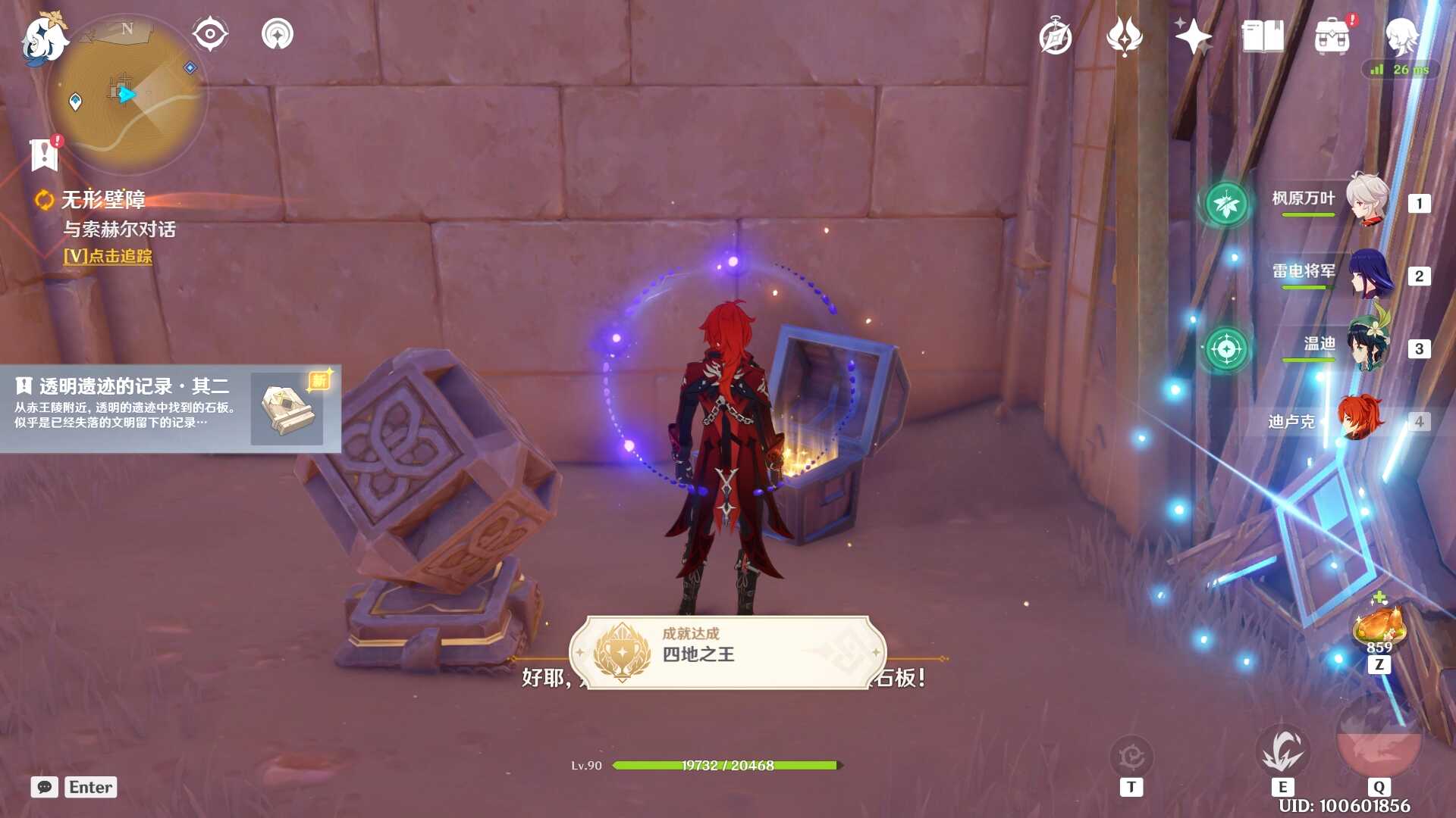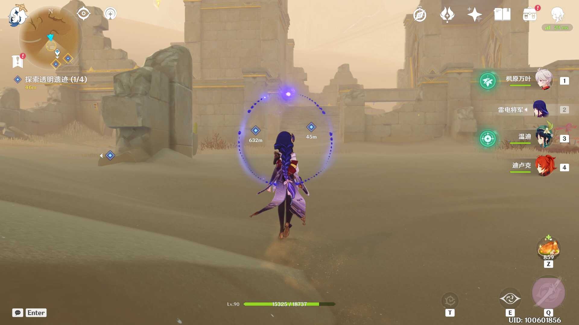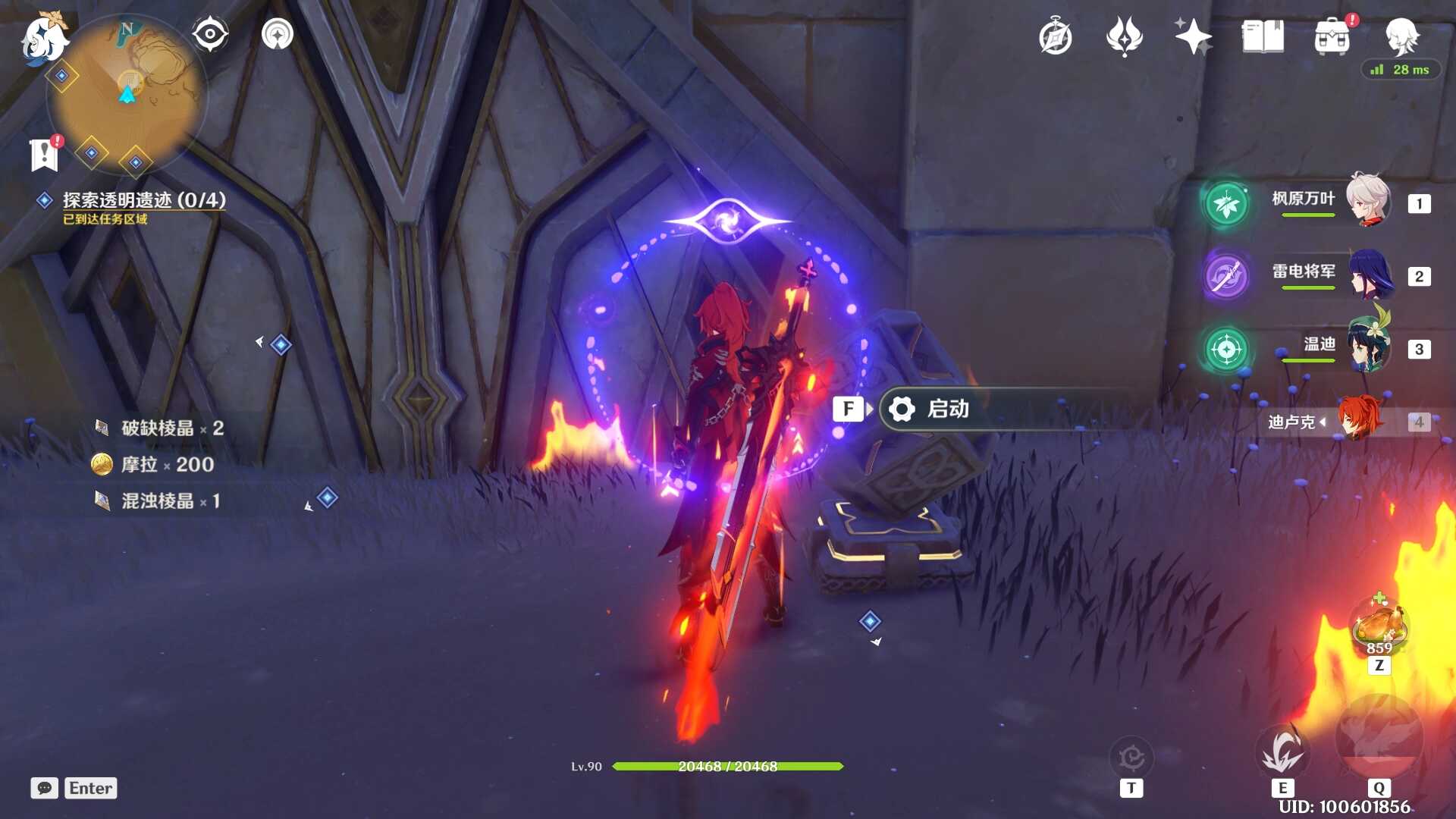 原神无形壁障任务攻略1、探险透明遗迹(0/4)