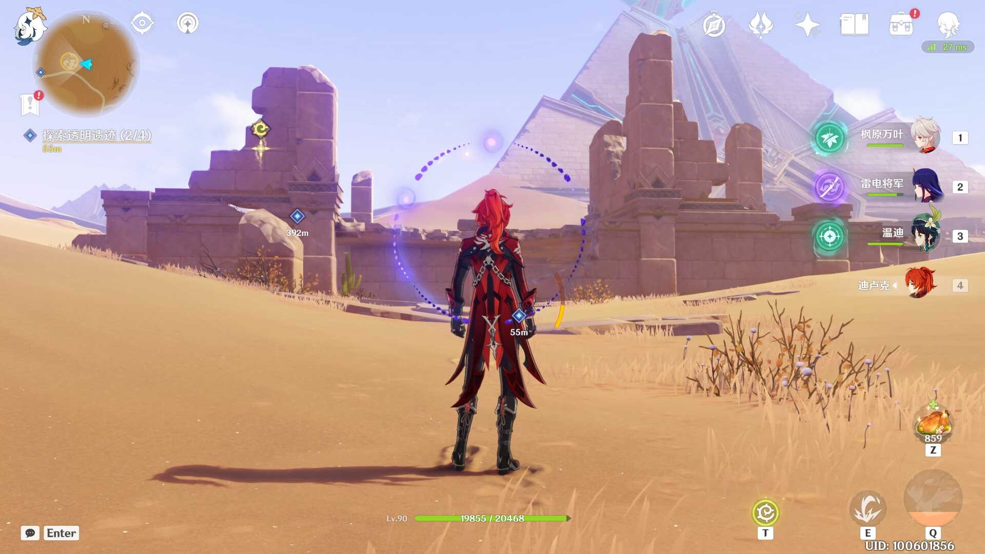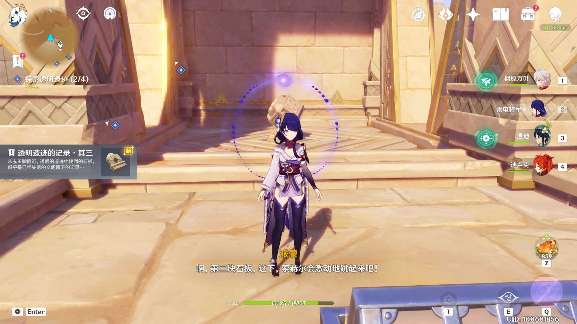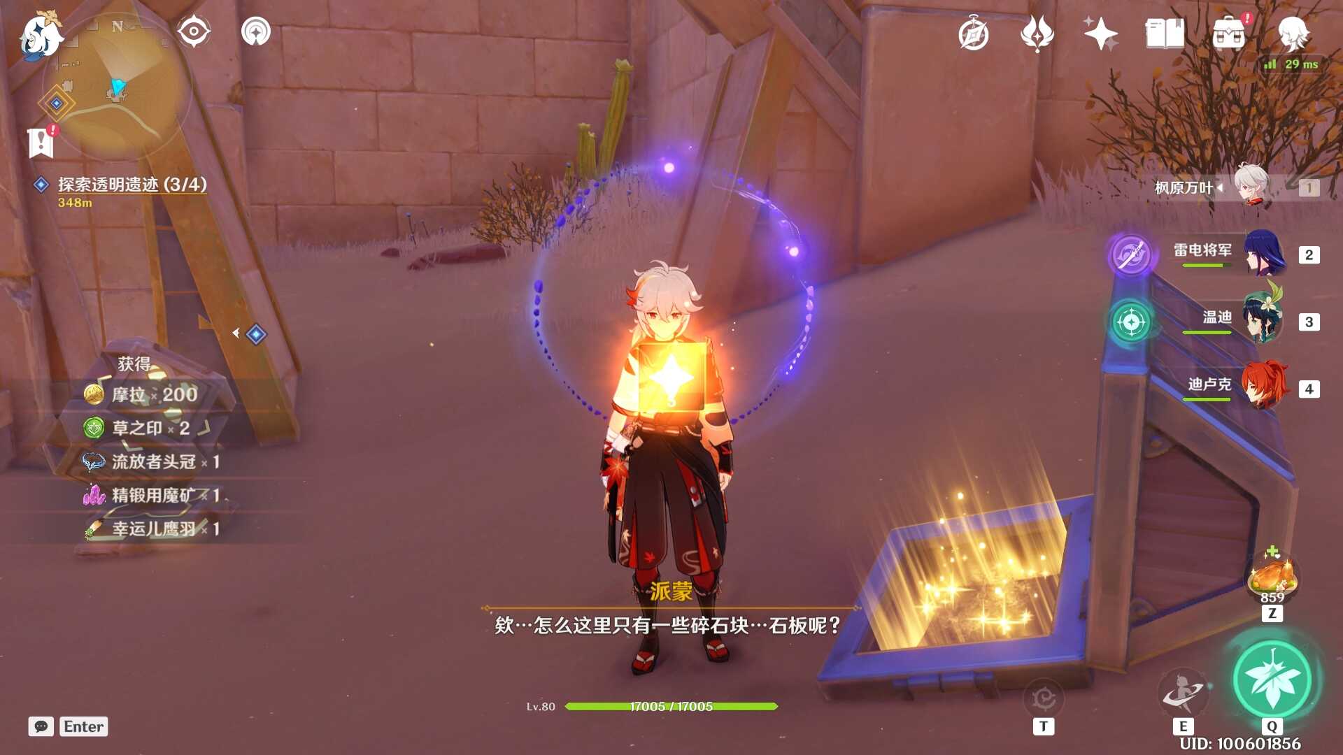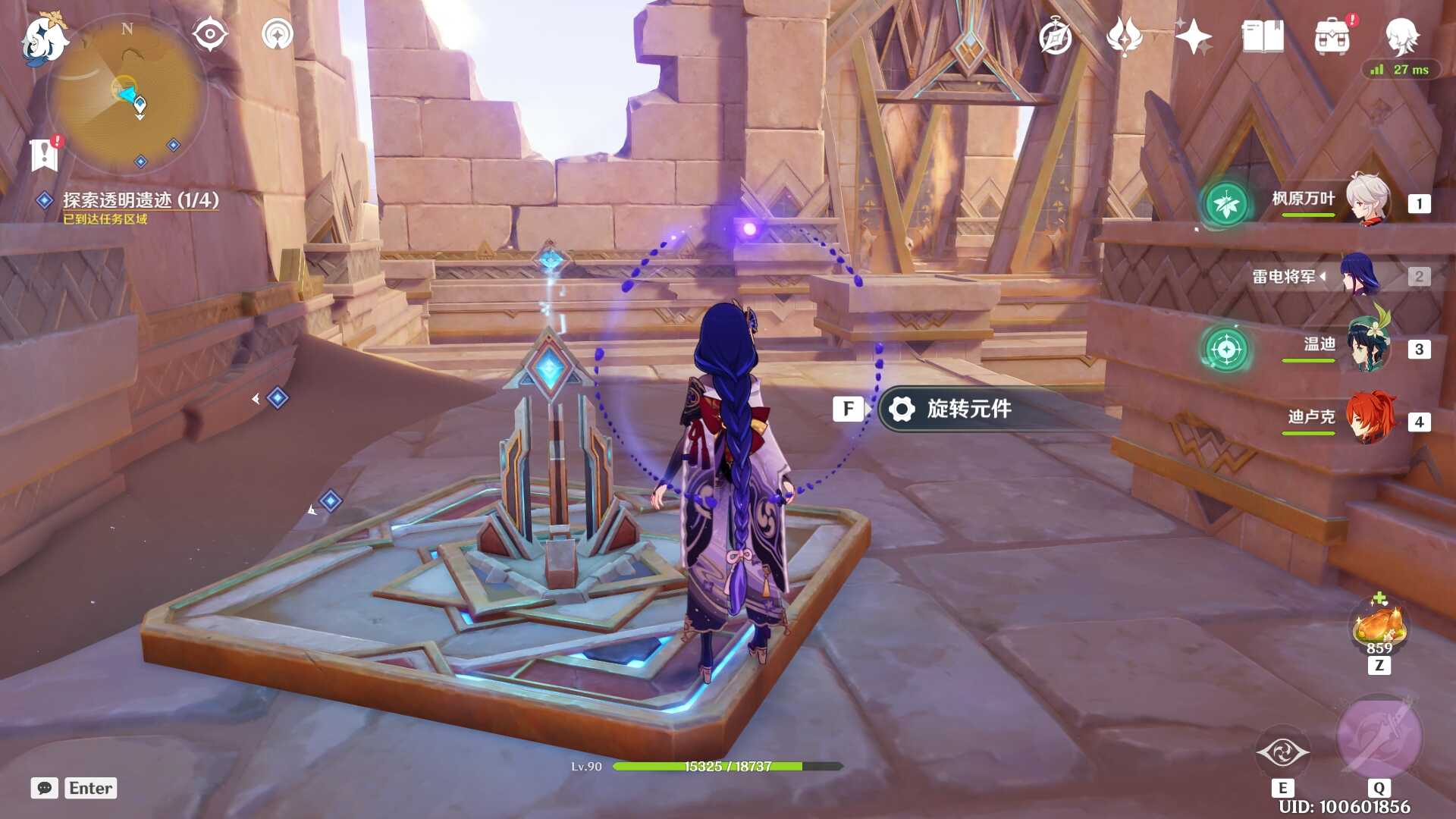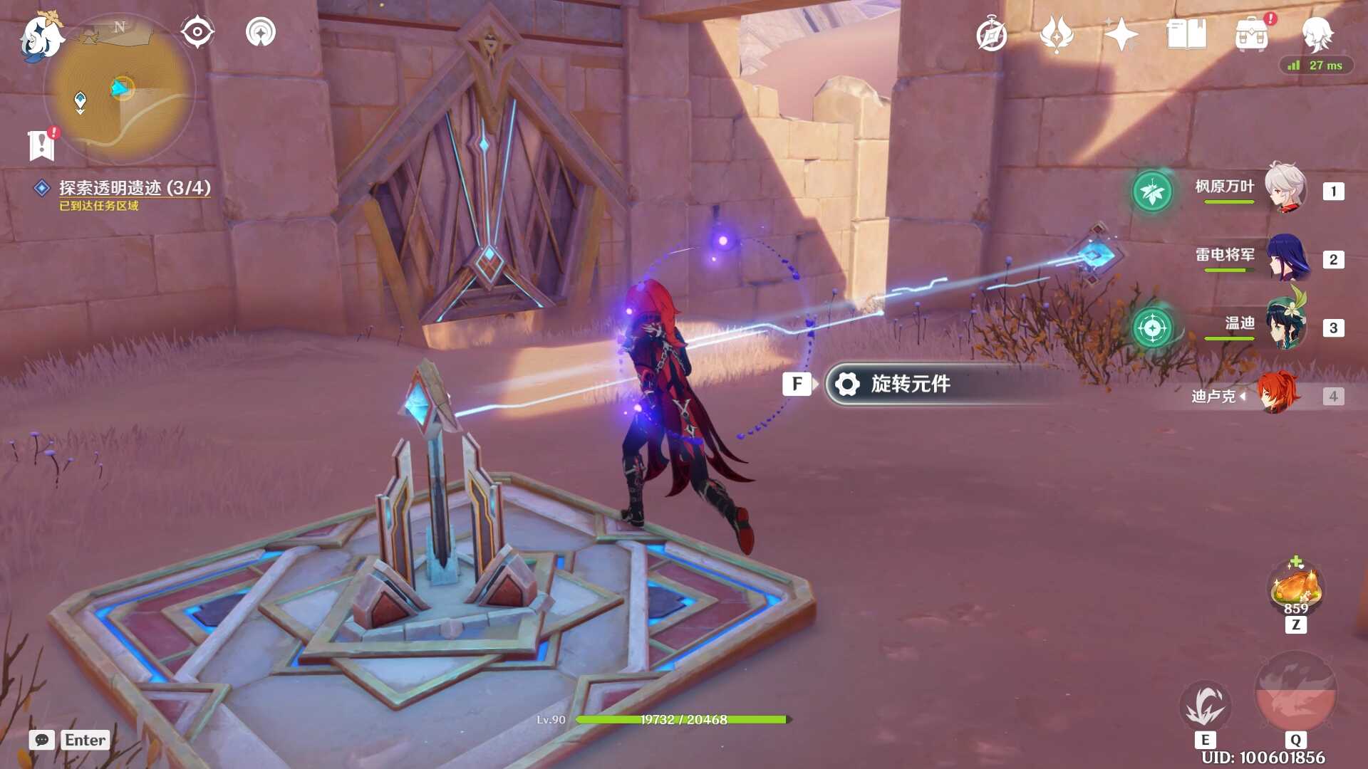 原神无形壁障任务攻略1、探险透明遗迹(0/4)