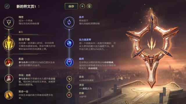 EZ目前最主流的符文点法是选择致命节奏流,這一套点法是韩服高端局玩家最喜(xi)欢(huan)用的,在路人局中玩家可以根据对面平均手长来选择符文,少数情况可以选择征服者。其他符文上EZ点出血统,副系点出法力流系带与超然。