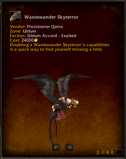 崇拜:坐骑——废土恐天鹫,24000金币购买。