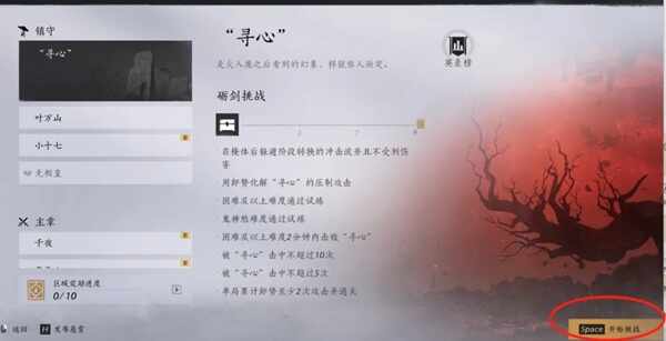 1、首先在菜单选择试(shi)炼(lian),找到“寻心”挑(tiao)战(zhan)。
