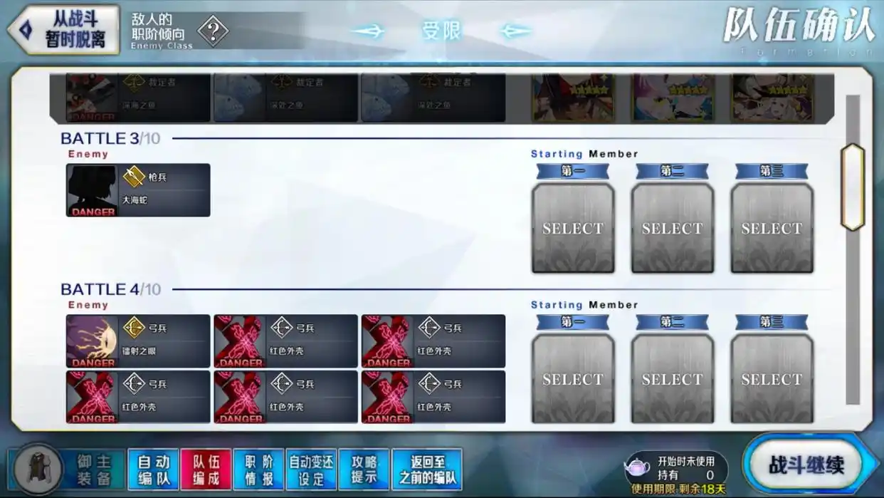 再选(xuan)择(ze)战(zhan)斗继续就可以重新进入关卡,虽然麻烦了点,但是可以重新洗牌,对于想(xiang)要用超人熊、黑贞或B叔之类从者暴击打最后(hou)一面的御主来说,可以用这个方式洗牌。