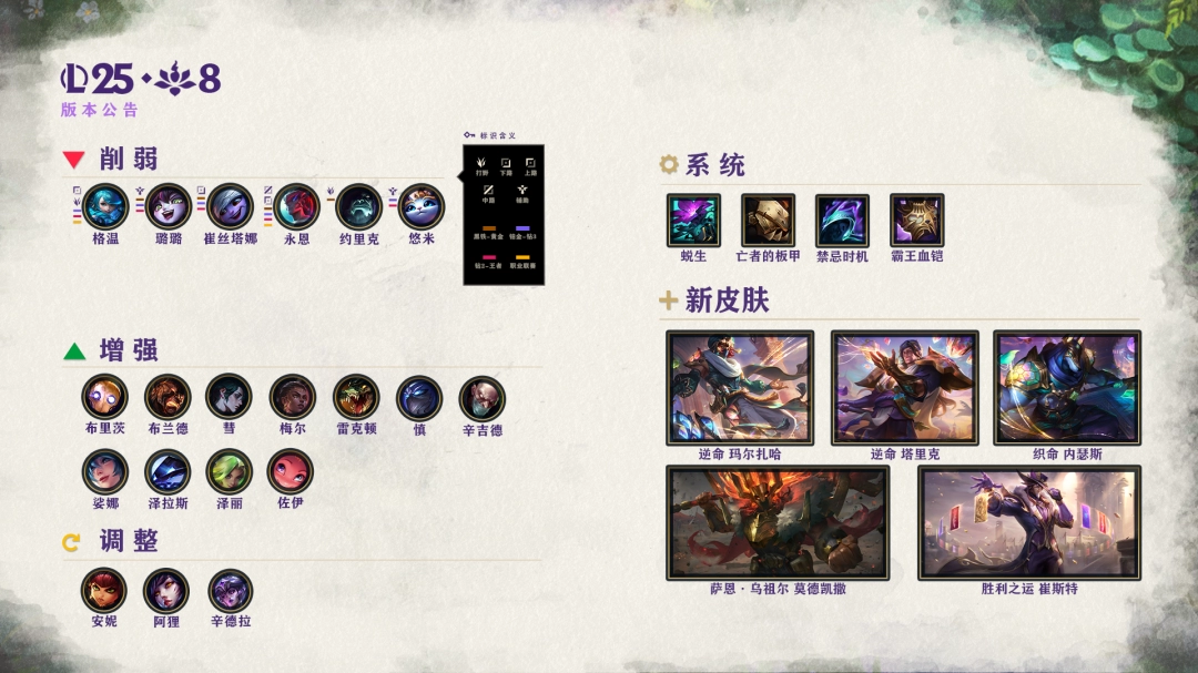 LOL25.8BUG修复一览●完整的厄塔汗语音包现已上线,其中包含对特定英雄的互动语音。赶快進入峡谷,找到所(suo)有(you)彩蛋吧!