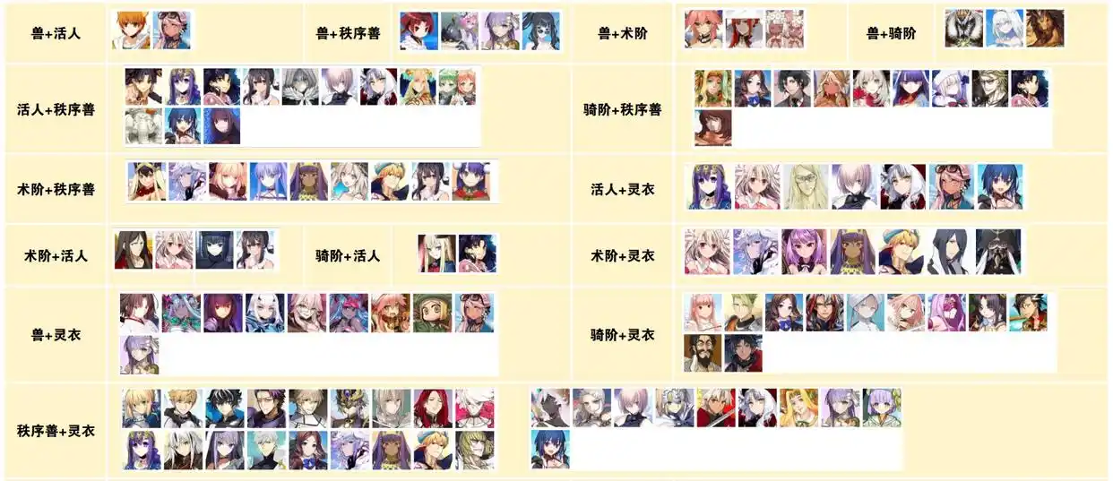 以上是新增了秩序女加成礼装之后,跟其他6张20%牵绊加成礼装搭配双重加成的从者,主要大头依旧是在搭配灵衣和秩序善里媔,主要确实是这两个(liangge)特性的成员比较多。